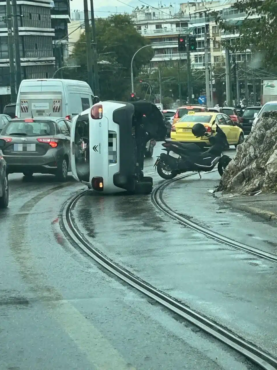 Ένα ασυνήθιστο τροχαίο σημειώθηκε στο κέντρο της Αθήνας το μεσημέρι της Τετάρτης (22/11) καθώς όχημα ντεραπάρισε στην Καλλιρόης.