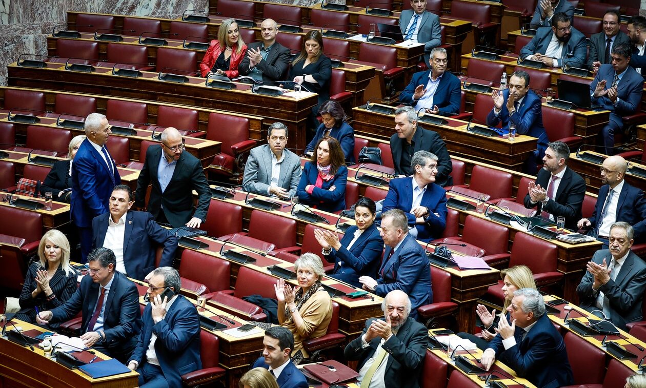 Άδεια είναι τα έδρανα της Βουλής εκεί όπου συνήθως βρίσκονται οι βουλευτές του ΣΥΡΙΖΑ, εξαιτίας της μεγάλης κρίσης που διέρχεται το κόμμα της αξιωματικής αντιπολίτευσης.
