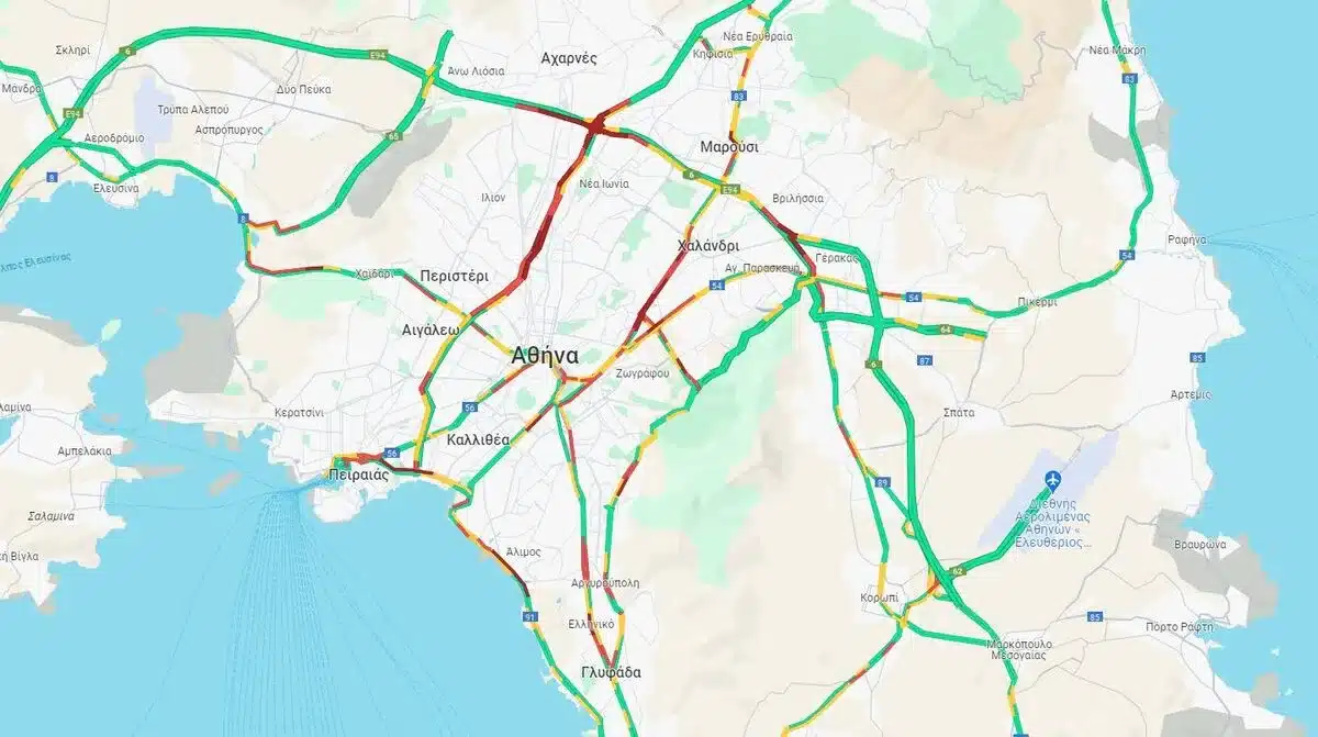 10΄-15΄από κόμβο Μεταμόρφωσης έως κόμβο Κηφισίας,