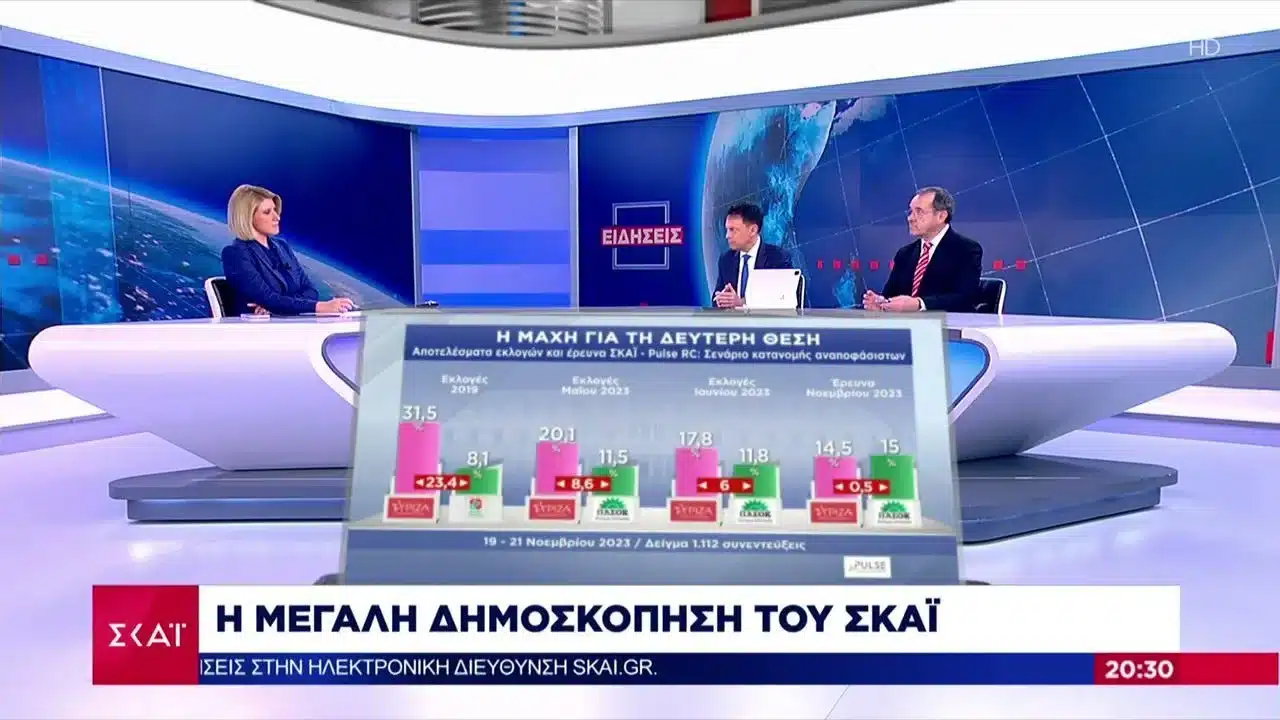 Νέο πλήγμα για τον ΣΥΡΙΖΑ αποτελεί η μεγάλη δημοσκόπηση της εταιρείας Pulse, που παρουσιάσθηκε στο σημερινό (23/11) κεντρικό δελτίο ειδήσεων του ΣΚΑΪ.