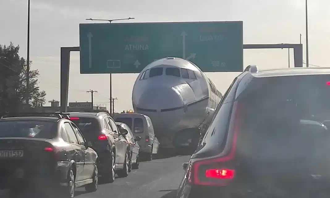 Όσοι οδηγοί έφταναν στο ύψος της γέφυρας της Λυκόβρυσης έβλεπαν ένα… ακινητοποιημένο αεροπλάνο!