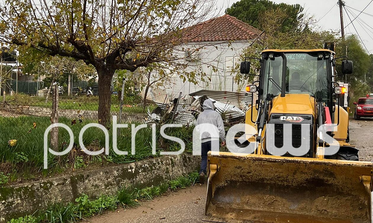 Ειδικότερα, ο ανεμοστρόβιλος «ξήλωσε» αποθηκευτικό χώρο από τσίγκους, με αποτέλεσμα να βρεθούν καταμεσής του δρόμου, σύμφωνα με ρεπορτάζ του ιστότοπου patrisnews.gr.