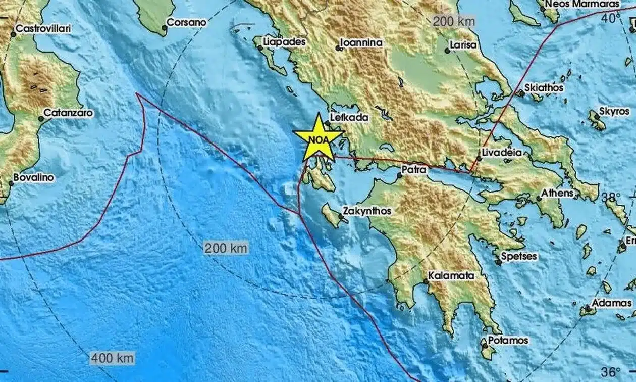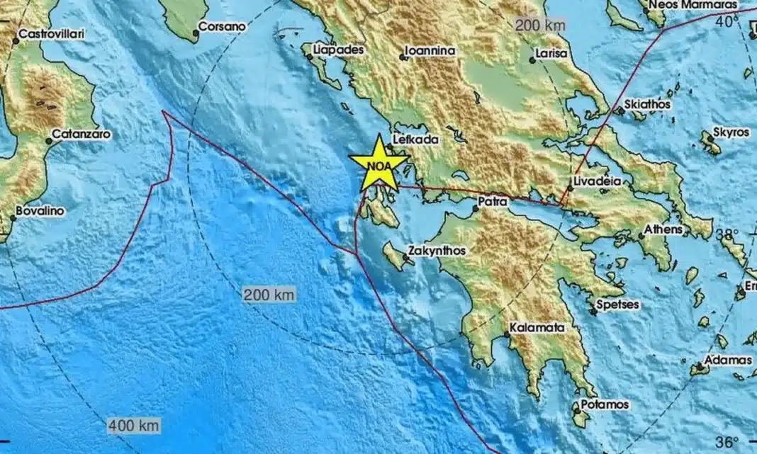 Το ακριβές επίκεντρο τη δόνησης εντοπίζεται στα 23 χλμ. νότια – νοτιοδυτικά της Λευκάδας.