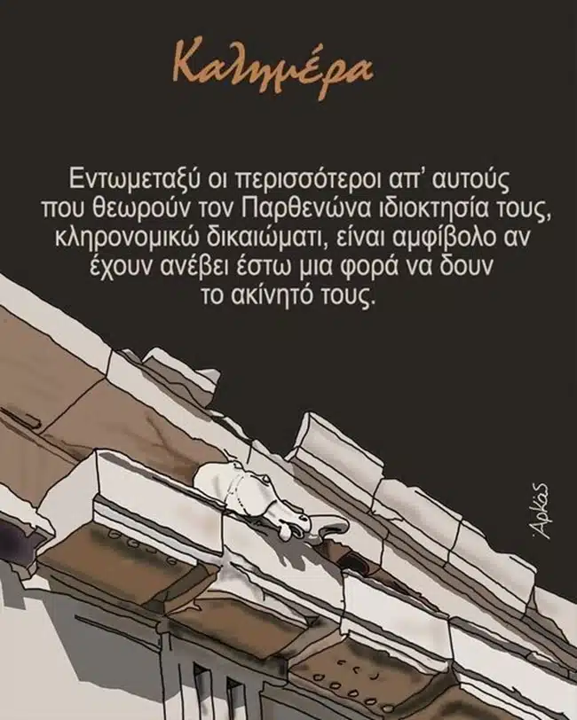 Με ένα νέο σκίτσο για την υπόθεση των γλυπτών του Παρθενώνα, επανέρχεται και σήμερα ο Αρκάς.