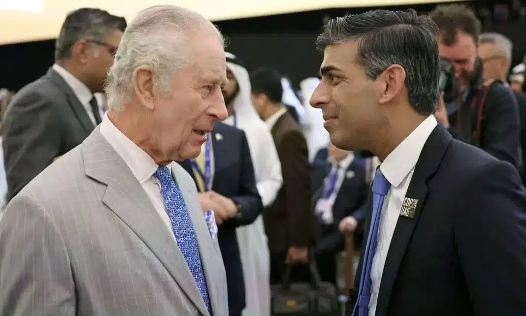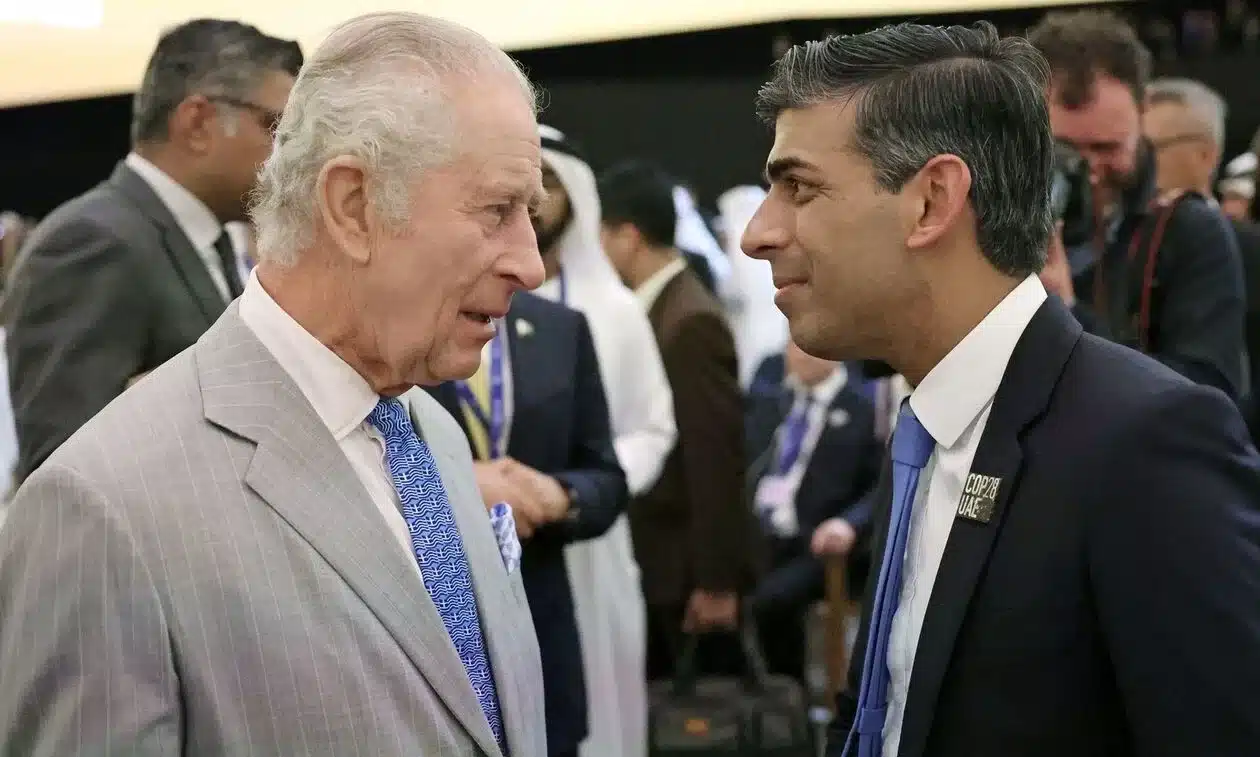Συγκεκριμένα, ο Κάρολος ο οποίος βρίσκεται στο Ντουμπάι για την Παγκόσμια Διάσκεψη Κορυφής για το Κλίμα κατά τη διάρκεια της COP28, είχε ένα σύντομο τετ α τετ με τον Ρίσι Σούνακ.