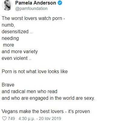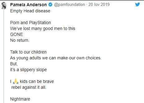 Με μία σειρά tweets η Πάμελα Άντερσον υποστηρίζει ότι οι σχέσεις είναι χειρότερες εξαιτίας του πορνό και των video games.