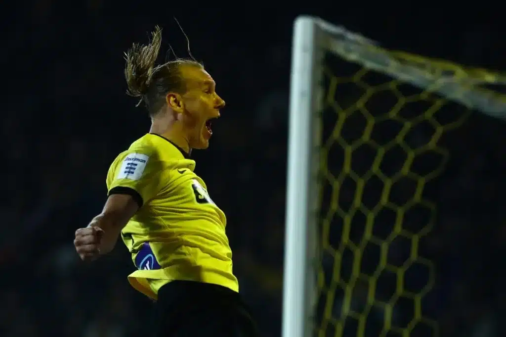 Στο 59’ η ΑΕΚ άνοιξε το σκορ απέναντι στον Άρη με καρφωτή κεφαλιά του Βίντα μετά από εκτέλεση κόρνερ του Μάνταλου.