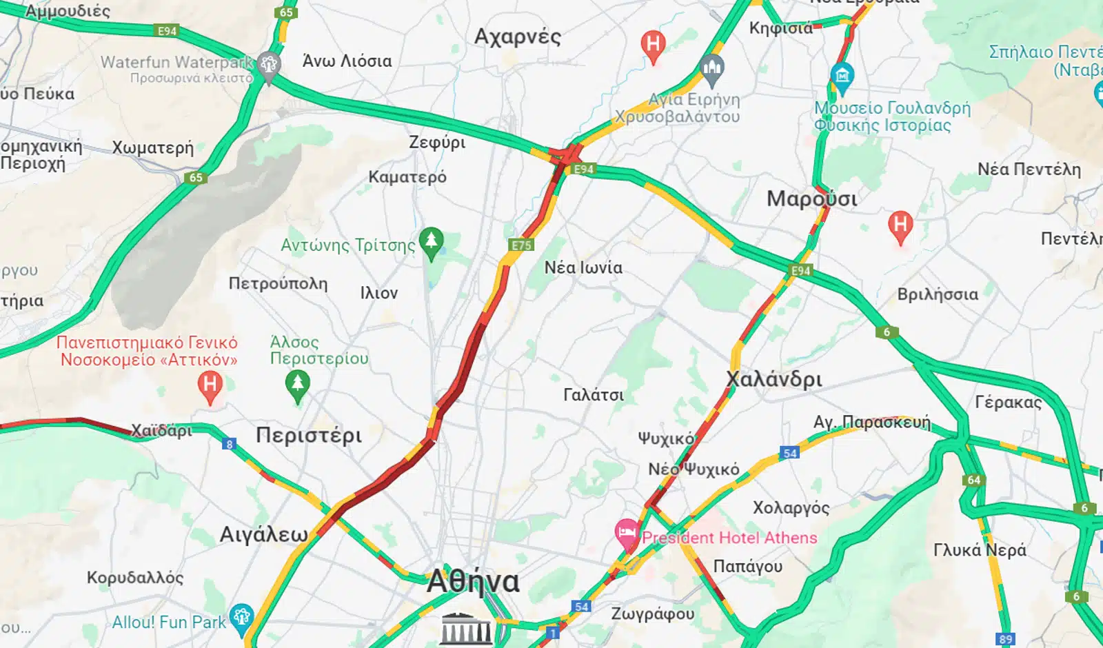 Στο κόκκινο είναι ο Κηφισός και στα δύο ρεύματα, ωστόσο τα προβλήματα είναι πιο έντονα στην άνοδο. Με υπομονή πρέπει να οπλιστούν και οι οδηγοί που κινούνται στη Λ. Κηφισίας ενώ καθυστερήσεις παρατηρούνται και στην Αττική οδό.