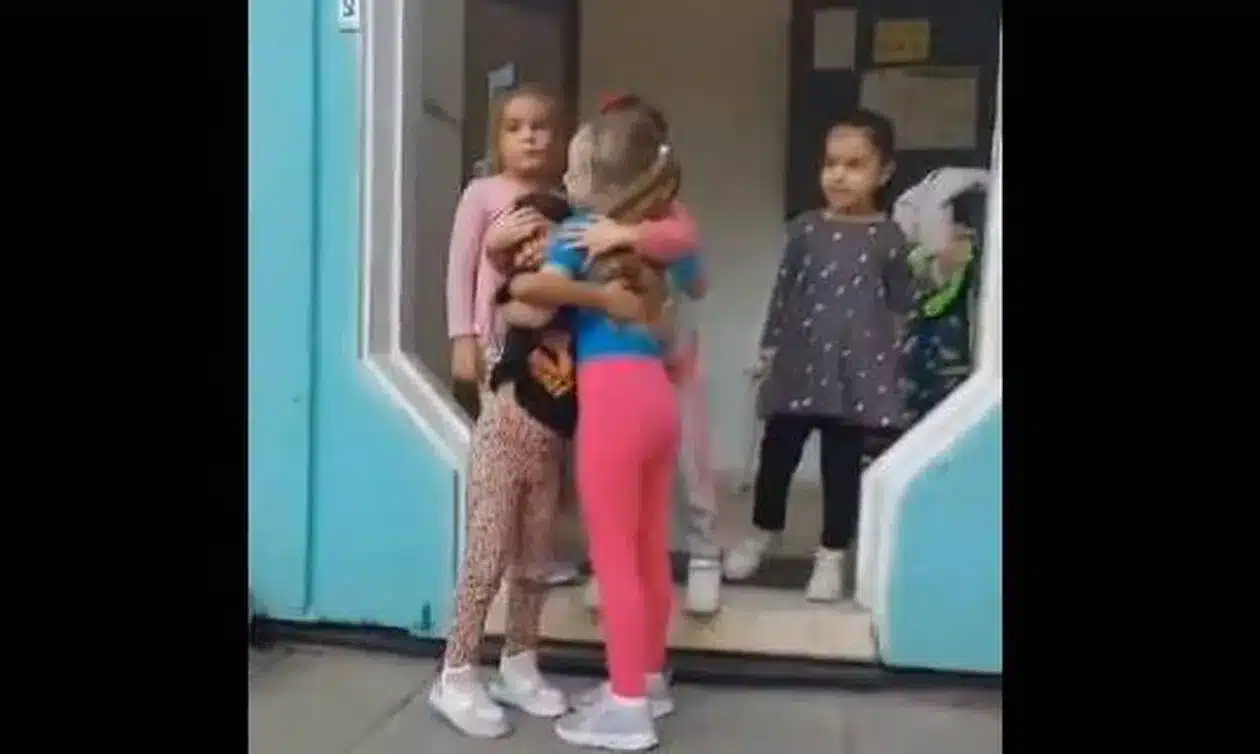 Στο βίντεο που ανέβηκε στην πλατφόρμα Χ φαίνεται η Εμιλία «χαμένη» μέσα στις αγκαλίες των συμμαθητών της.