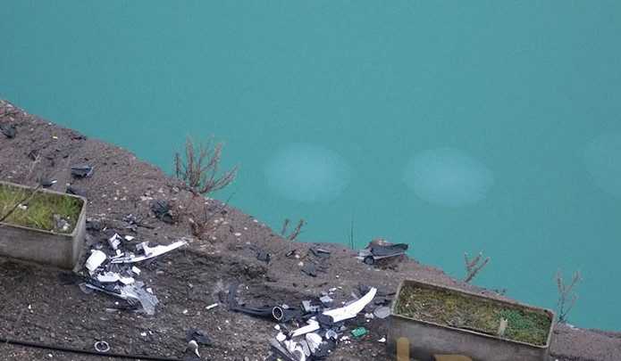 Σύμφωνα με πληροφορίες του agriniopress.gr εκτός από τα συντρίμμια που έχουν βρεθεί στον τεχνητό αυτό γκρεμό πάνω από την λίμνη Στράτου, έχει βρεθεί και προφυλακτήρας με πινακίδα οχήματος.
