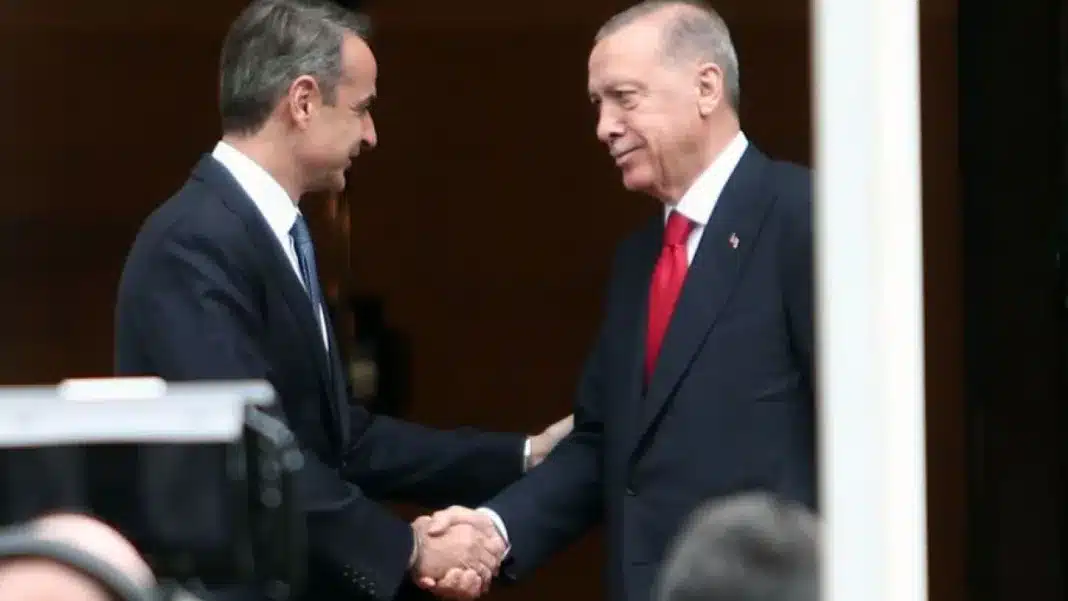 Σε εξέλιξη η συνάντηση Μητσοτάκη – Ερντογάν