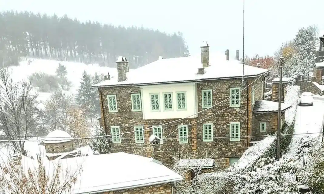 Στα ορεινά της Φλώρινας, ξεκίνησε η χιονόπτωση από νωρίς και έτσι το έστρωσε στις στέγες σπιτιών και λίγο στους δρόμους στη Δροσοπηγή και το Νυμφαίο.