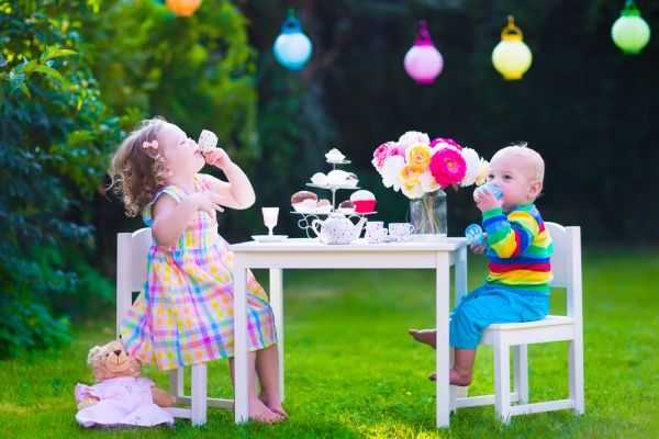16-20 μηνών: πάρτι με τσάι. Μία ηλιόλουστη μέρα γίνεται ιδανική επιλογή για τσάι στο πάρκο, όπου το παιδί μαθαίνει πώς να χειρίζεται το νερό, βλέπει ότι η ροή είναι προς τα κάτω και μαθαίνει πώς να συντονίζει τις κινήσεις του.