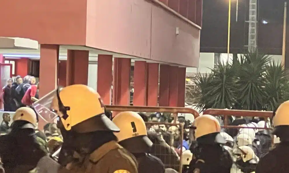 Σύμφωνα με την αστυνομία, λίγο πριν από τις 22:00 περίπου 150 οπαδοί βγήκαν από το κλειστό και πέταξαν μολότοφ προς τις αστυνομικές δυνάμεις, που απάντησαν με την χρήση χημικών.