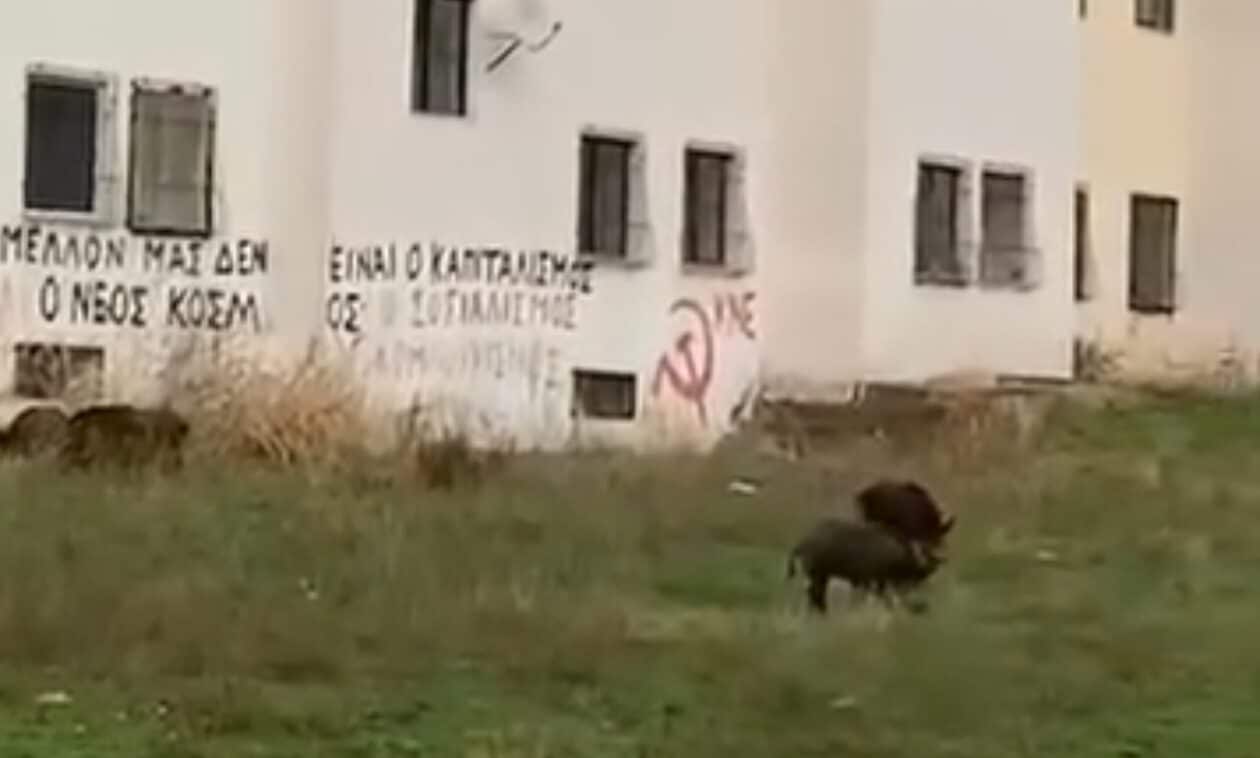 Αυτό που ωστόσο προκαλεί εντύπωση είναι το γεγονός πως έξω από τις φοιτητικές εστίες εντοπίστηκε μια μικρή αγέλη από αγριογούρουνα.