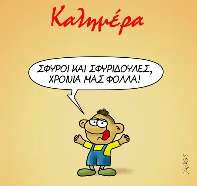 Στο σημερινό του σκίτσο, ο Θανασάκης με το δικό του μοναδικό τρόπο εύχεται στον Σπύρο και την Σπυριδούλα που γιορτάζουν σήμερα!