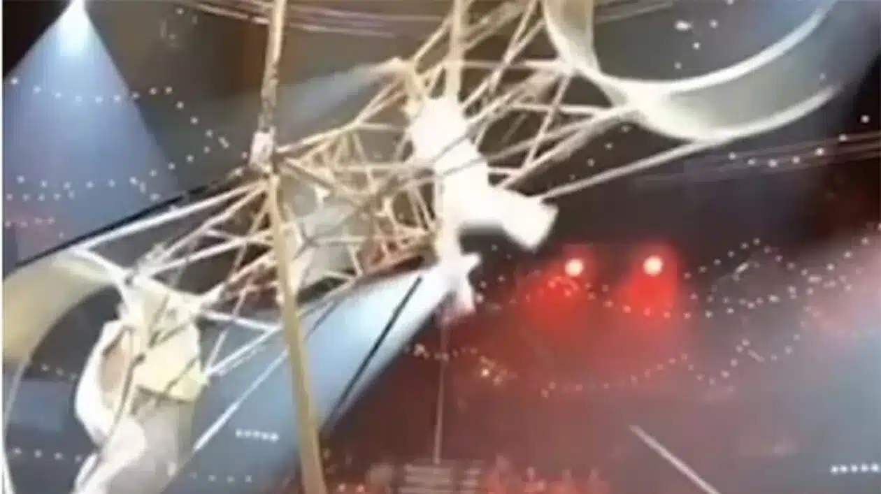 Η κάμερα ενός θεατή κατέγραψε την τρομακτική πτώση ενός ακροβάτη από ύψος 5 μέτρων από έναν «γιγαντιαίο τροχό θανάτου» κατά τη διάρκεια ενός ακροβατικού νούμερου σε τσίρκο, αναφέρει η DailyMail