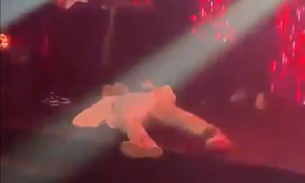 Στο σοκαριστικό βίντεο που κάνει τον γύρω του διαδικτύου φαίνεται ο τραγουδιστής να ερμηνεύει με πάθος το τραγούδι και ξαφνικά να πέφτει κάτω.