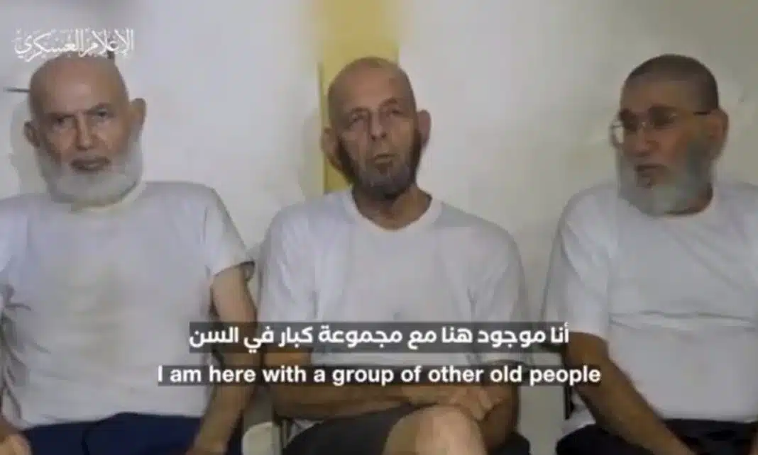 Η ένοπλη πτέρυγα της Χαμάς, οι Ταξιαρχίες Εζεντίν αλ Κάσαμ, ανήρτησαν σήμερα ένα βιντεοσκοπημένο μήνυμα στον λογαριασμό τους στο Telegram, στο οποίο εμφανίζονται τρεις ηλικιωμένοι Ισραηλινοί όμηροι που παρακαλούν για την απελευθέρωσή τους.