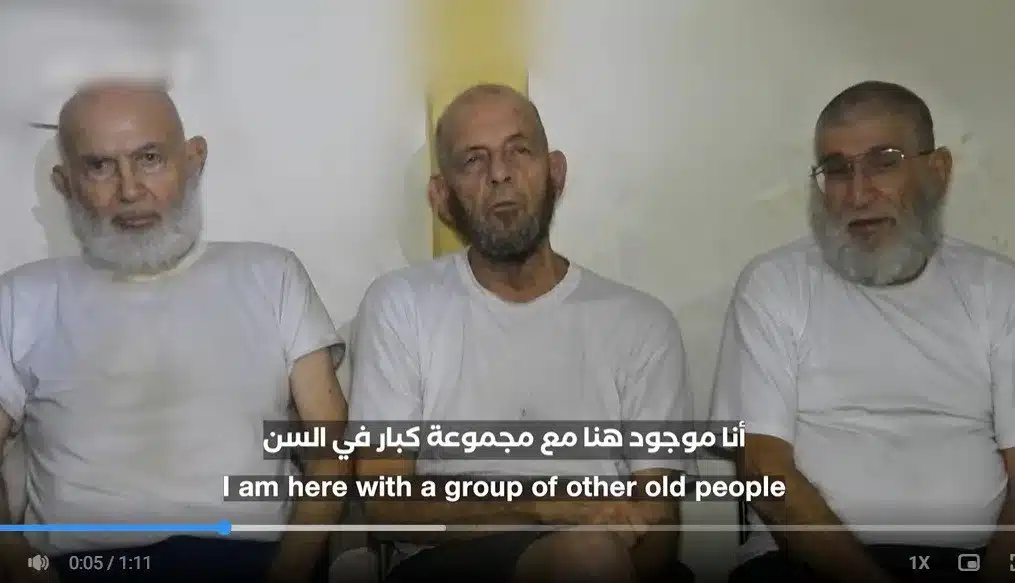 Η ένοπλη πτέρυγα της Χαμάς, οι Ταξιαρχίες Εζεντίν αλ Κάσαμ, ανάρτησαν σήμερα ένα βιντεοσκοπημένο μήνυμα στον λογαριασμό τους στο Telegram, στο οποίο εμφανίζονται τρεις ηλικιωμένοι Ισραηλινοί όμηροι που παρακαλούν για την απελευθέρωσή τους.