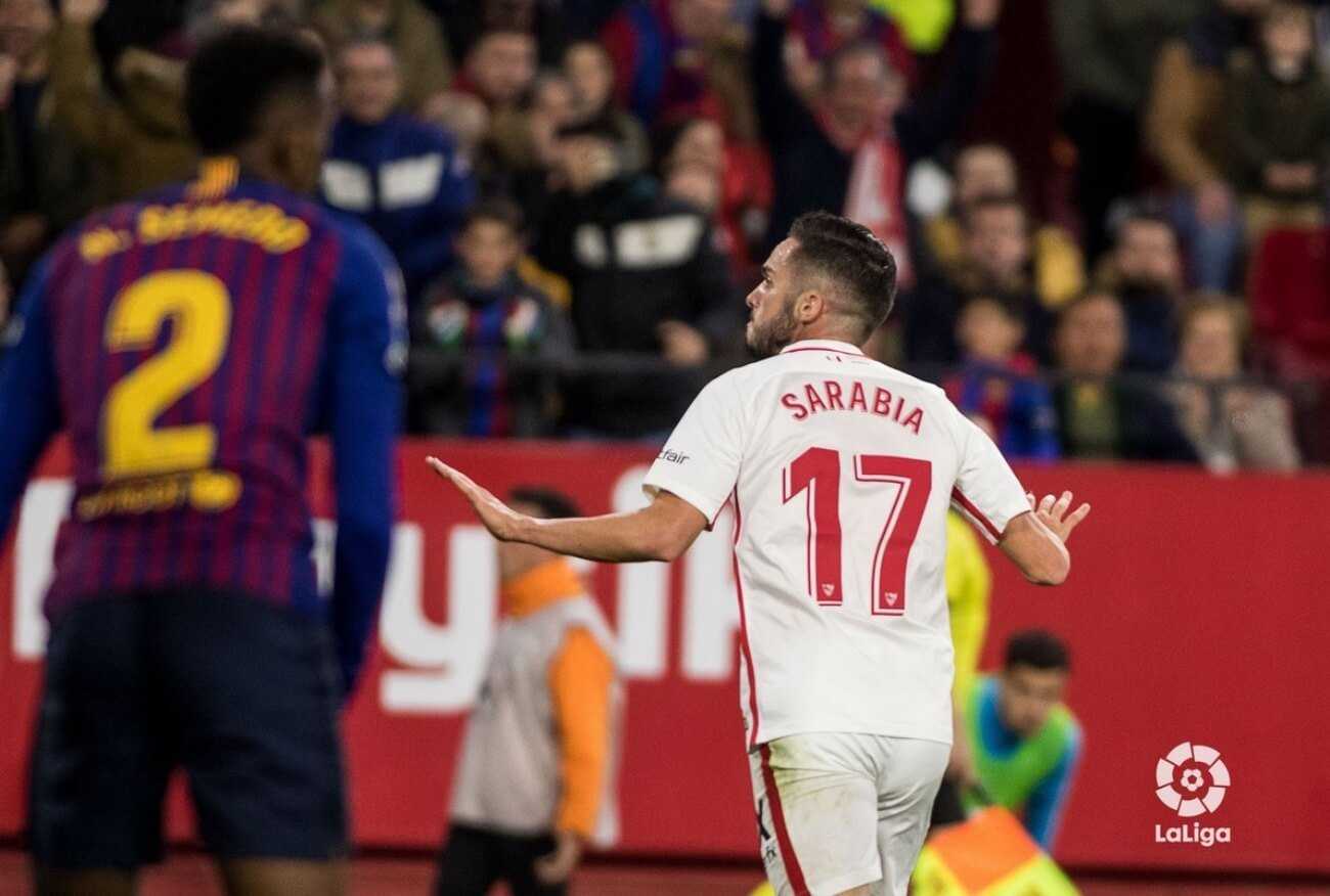 Σαφές προβάδισμα πρόκρισης στα ημιτελικά του Κυπέλλου Ισπανίας πήρε η Σεβίλλη, που επικράτησε εντός έδρας της Μπαρτσελόνα με 2-0, στον πρώτο αγώνα των δύο ομάδων.
