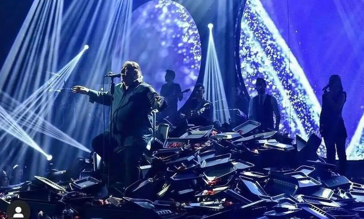 Η Πάολα τραγούδησε το «Απ’ τον Βορρά Μέχρι τον Νότο» με πλάνα του Βασίλη Καρρά να εμφανίζονται στις οθόνες πίσω της.