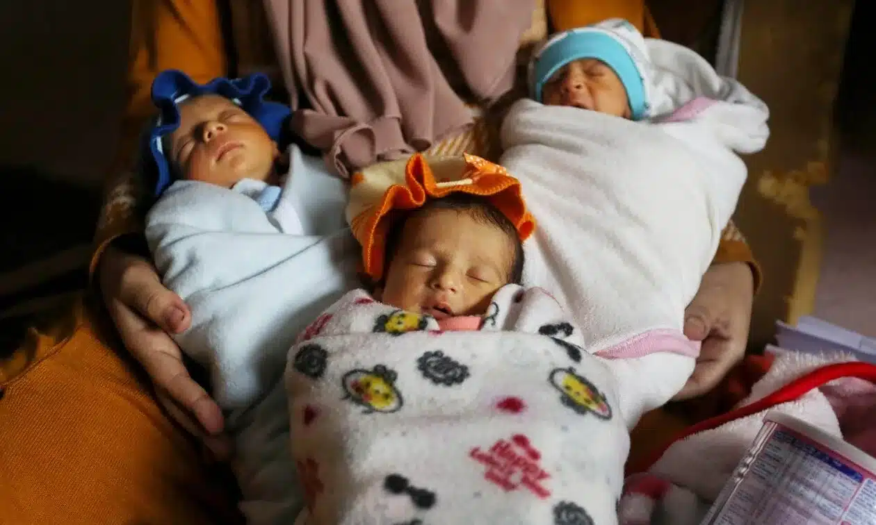 Η Ιμάν αλ Μάσρι είναι εξαντλημένη, ενώ δίπλα της σε ένα παλιό στρώμα κοιμούνται τρία από τα τέσσερα πρόωρα μωρά της. Μετά από ένα κουραστικό ταξίδι προς τη νότια Λωρίδα της Γάζας η νεαρή έφερε στον κόσμο με καισαρική τα τετράδυμα μωρά της.