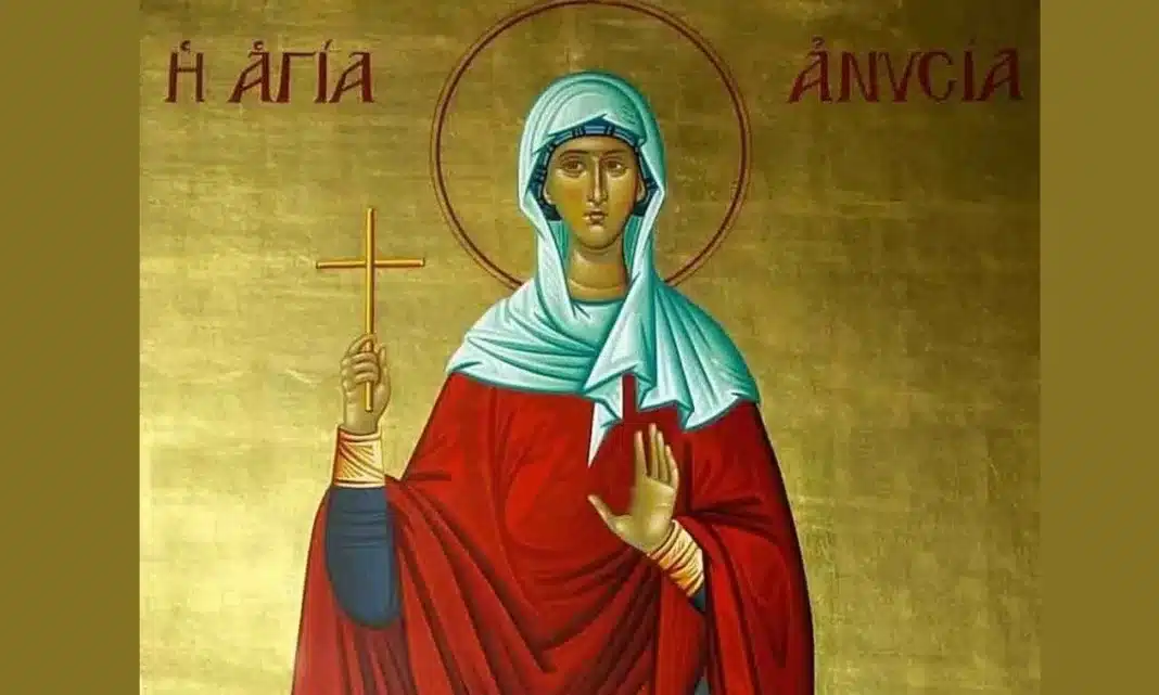 Σύμφωνα με τον συναξαριστή, η Αγία Ανυσία, έζησε στα χρόνια του αυτοκράτορα Διοκλητιανού (298 μ.Χ.). Καταγόταν από τη Θεσσαλονίκη και ήταν θυγατέρα γονέων ευσεβών και πολύ πλουσίων. Όταν πέθαναν οι γονείς της, η Ανυσία στάθηκε κυρία του εαυτού της. Ούτε τα πλούτη που κληρονόμησε τη μέθυσαν, ούτε η ορφάνια της την παρέσυρε. Αλλά με φρόνηση και εγκράτεια, προσπαθούσε πάντα να μαθαίνει «τι εστίν ευάρεστον τω Κυρίω». Τι δηλαδή, είναι ευχάριστο και ευπρόσδεκτο στον Κύριο.