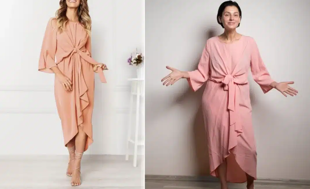Το φόρεμα που έλαβε (αριστερά) και η μετατροπή του (δεξιά)