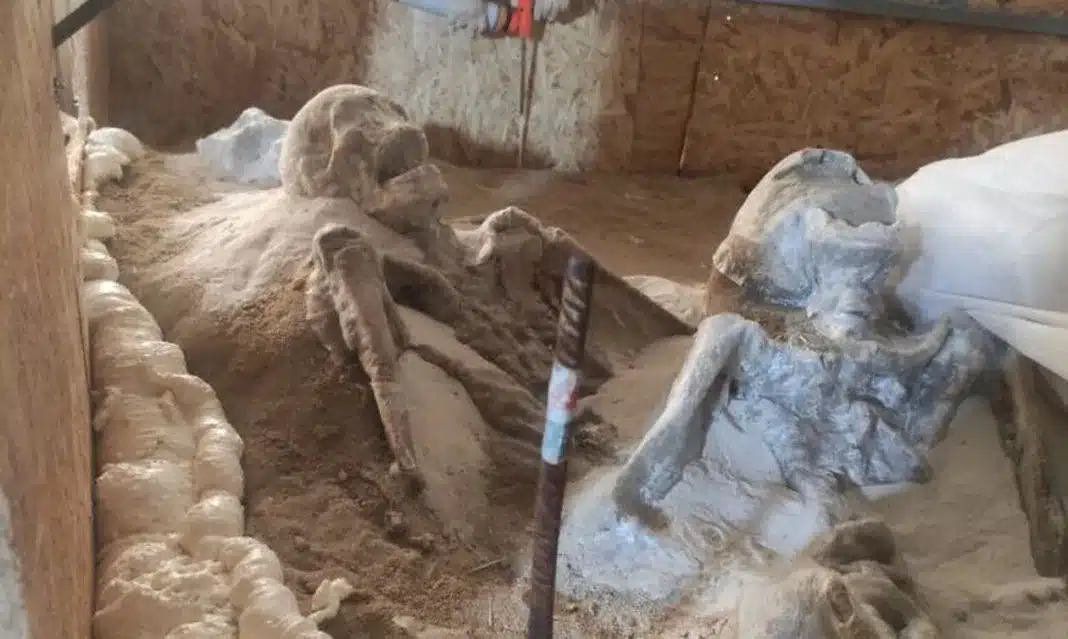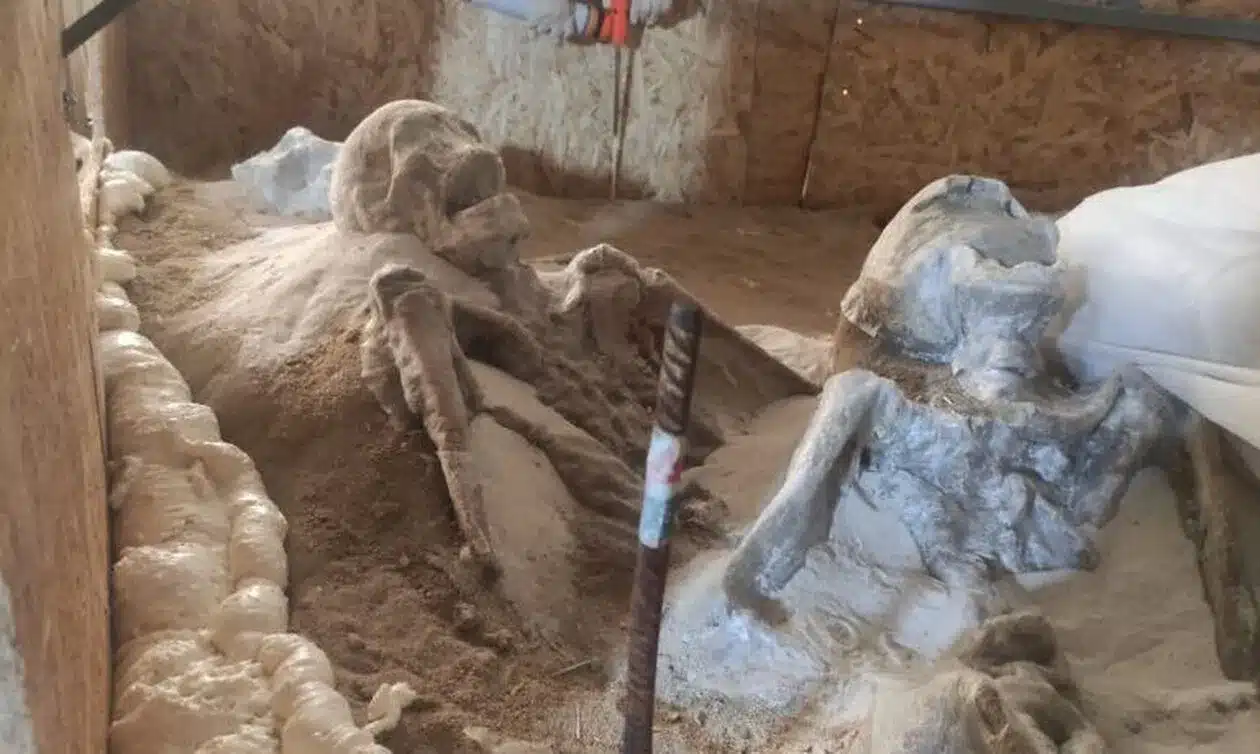 «Από την αποκάλυψή του έως το τέλος του 2022, το οστεολογικό υλικό δεχόταν την φροντίδα των συντηρητών της Εφορείας Αρχαιοτήτων κατά χώραν. Όμως, δεδομένων των περιβαλλοντικών συνθηκών, της γειτνίασης με τον υδροφόρο ορίζοντα, τη συνεχή ανερχόμενη υγρασία, σε συνδυασμό με την ύπαρξη αλάτων και την διαρκή ανακρυστάλλωσή τους, αποφασίστηκε -μετά την ομόφωνα θετική γνωμοδότησή του Κεντρικού Αρχαιολογικού Συμβουλίου- η προσωρινή μετακίνησή του από το χώρο εύρεσής του σε κατάλληλα διαμορφωμένη παρακείμενη θέση, επάνω σε υπόβαση σκυροδέματος» επισημαίνει η σχετική ανακοίνωση του υπουργείου Πολιτισμού. Όσο για τις εργασίες μετακίνησης «έγιναν, στις αρχές του 2023, με ολίσθηση επάνω σε σιδερένιες ράγες για τις δυο πρώτες συστάδες και από γερανοφόρο όχημα για την τρίτη συστάδα, αφού πρώτα το οστεολογικό υλικό εγκιβωτίστηκε σε ξύλινες κατασκευές και το σύνολο του ευρήματος συγκρατήθηκε με την κατασκευή μεταλλικού χωροδικτυώματος». Για τον έλεγχο των περιβαλλοντικών συνθηκών «εγκαταστάθηκε εντός του προσωρινού κελύφους μηχανολογικός εξοπλισμός ύγρανσης-αφύγρανσης και κλιματισμού ενώ οι συνθήκες καταγράφονται διαρκώς μέσω ηλεκτρονικών καταγραφέων» αναφέρεται στην ανακοίνωση του υπουργείου.