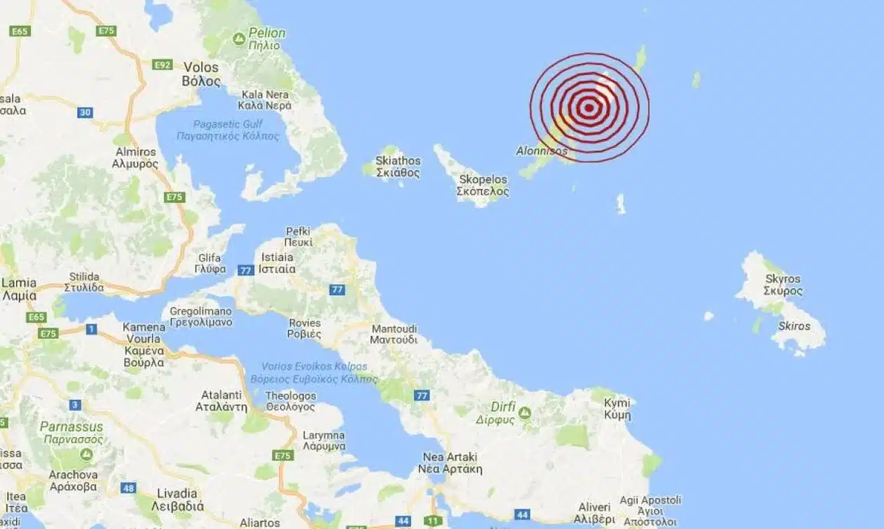 Σεισμική δόνηση 3,1 Ρίχτερ σημειώθηκε το μεσημέρι της Τετάρτης σε θαλάσσια περιοχή 44 χιλιόμετρα βορειοδυτικά της Αλοννήσου.