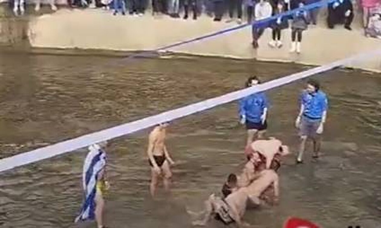 Μετά τη ρίψη του σταυρού από τον ιερέα, τον έπιασε αρχικά ένας νεαρός. Όμως, όρμηξαν πάνω του άλλοι για να τον πάρουν, με αποτέλεσμα να υπάρξει ένταση μέσα στο νερό, σύμφωνα με το trikalaopinion.gr.