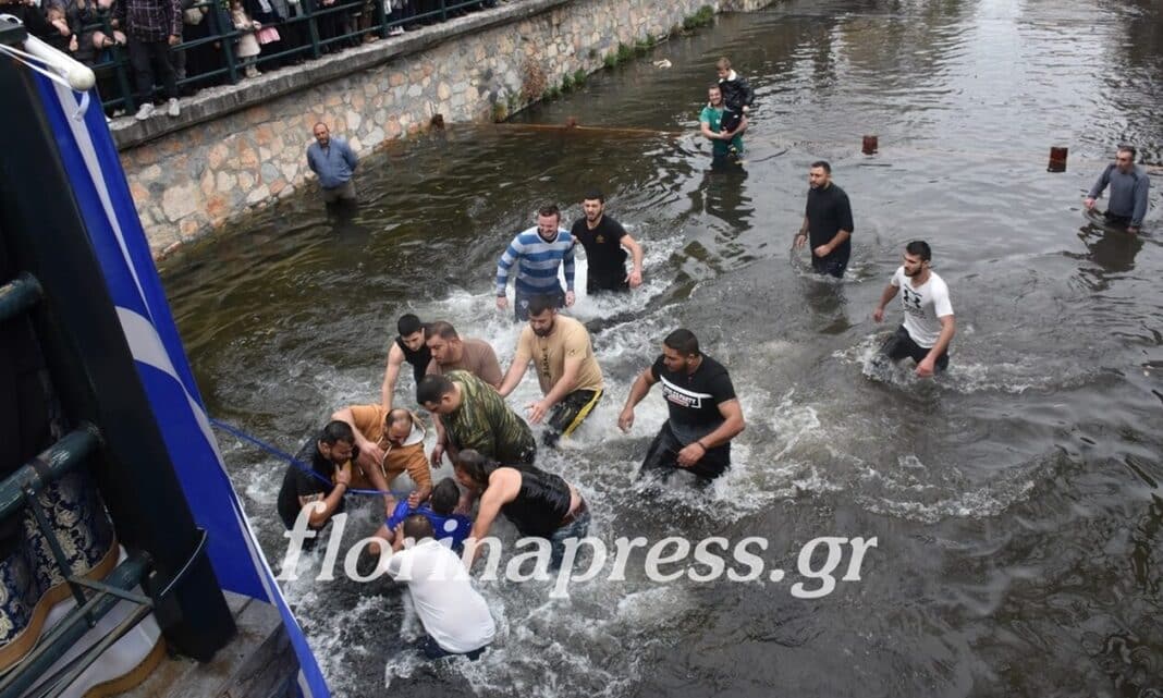 Στον ποταμό Σακουλέβα, μπροστά από τον Ιερό Μητροπολιτικό Ναό Αγίου Παντελεήμονα, στη Φλώρινα, πραγματοποιήθηκε ο αγιασμός των υδάτων από τον Μητροπολίτη Φλωρίνης Πρεσπών και Εορδαίας, Ειρηναίο, με την παρουσία τοπικών αρχών και πολιτών.