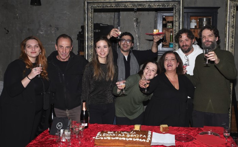 Κοπή της πίτας έγινε στο Θέατρο Αποθήκη το βράδυ της Δευτέρας 9/1 για την παράσταση «Μαντάμ Μποβαρί» με όλους της συντελεστές της να είναι εκεί.