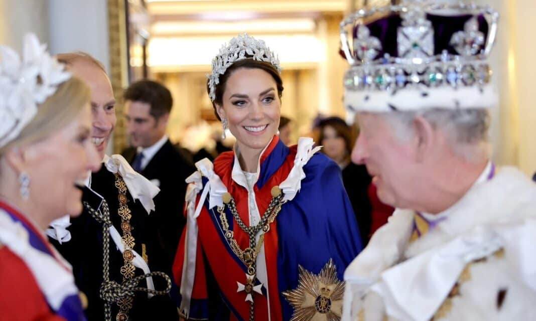 Τραβηγμένη από τον Chris Jackson, φωτογραφία δείχνει την πριγκίπισσα της Ουαλίας, μαζί με τον Κάρολο και την Καμίλα σε μια παρασκηνιακή στιγμή στην περσινή στέψη.