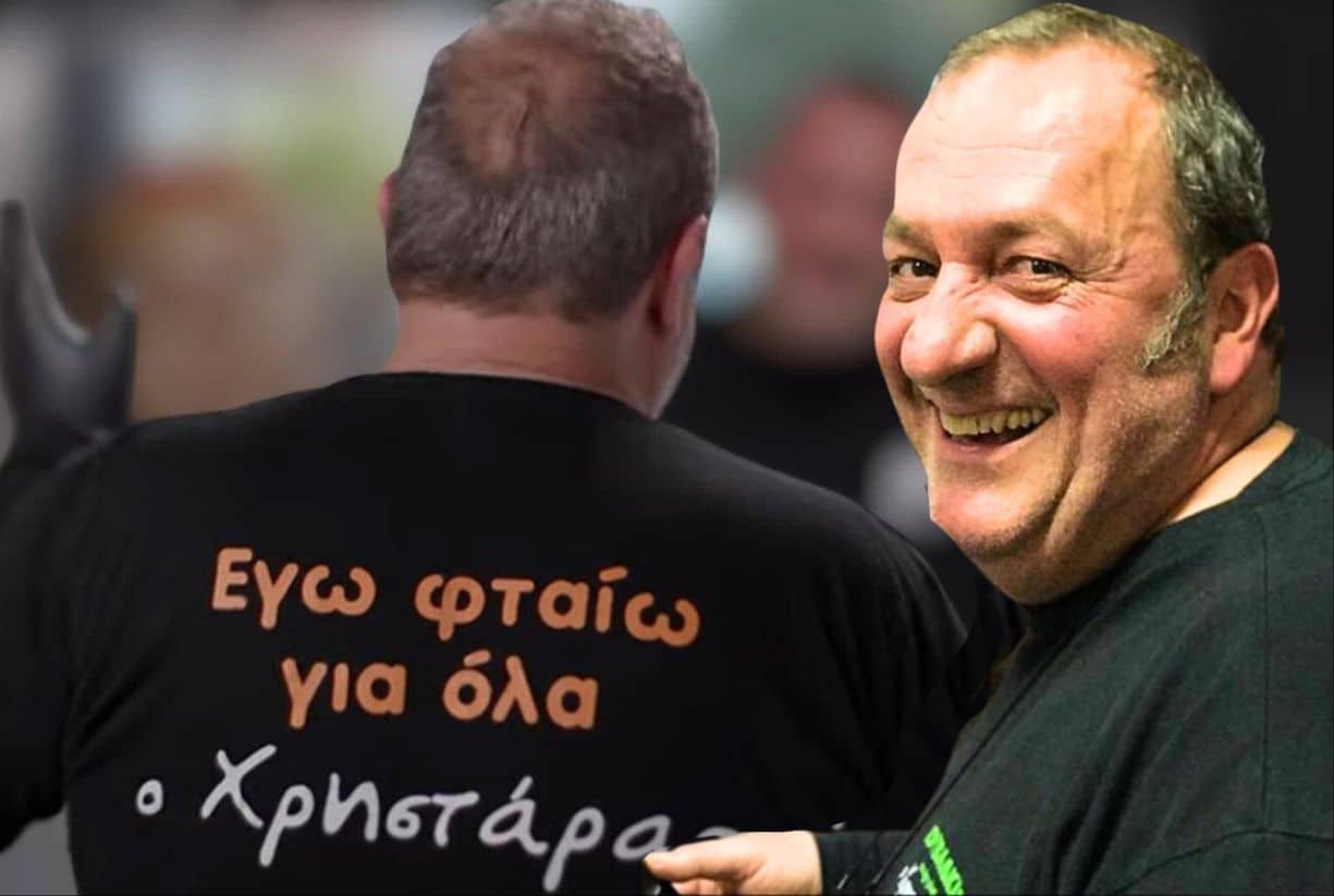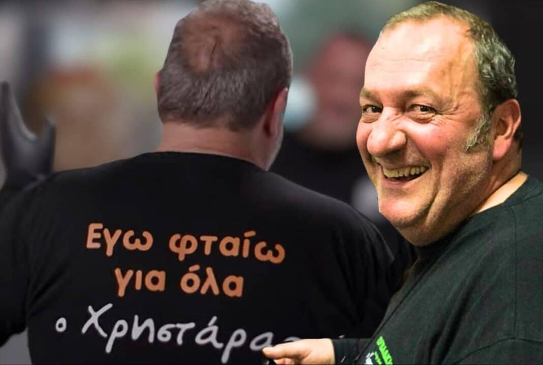 Ήρθε η ώρα να δείτε ποιος είναι ο Χρηστάρας που έχει ψήσει εκατομμύρια καλαμάκια (σουβλάκια) για πάρτη σας, για πάρτη μας, αλλά και για πάρτη του (δικαιολογούμε τη κοιλούμπα του). Το πως χώρεσε στις φωτογραφίες μην το ρωτάτε. Ένας Θεός και ο… φωτογράφος το ξέρουν. Φτάνει μόνο που ο Χρηστάρας είναι από τα καλύτερα παιδιά της πιάτσας. Ναι, καλά διαβάσατε, παιδί, αιώνιος έφηβος και με μεγάλη καψούρα για τη δουλειά του. Γουστάρει να βλέπει κόσμο να “τουμπανιάζει” από τα καλούδια που τους ετοιμάζει αυτός, αυτή (η κα Σούλα), τα παιδιά (ο γιος και η κόρη) και τα κορίτσια τους (οι κοπέλες που είναι στον πάγκο και ετοιμάζουν).