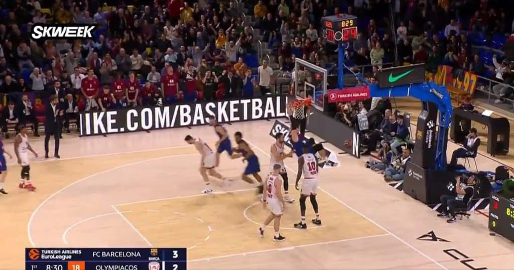 Οι παίκτες της Μπαρτσελόνα έτρεξαν στον αιφνιδιασμό και με φοβερό συνδυασμό βρήκαν τον Βέσελι που τελείωσε με κάρφωμα τη φάση.