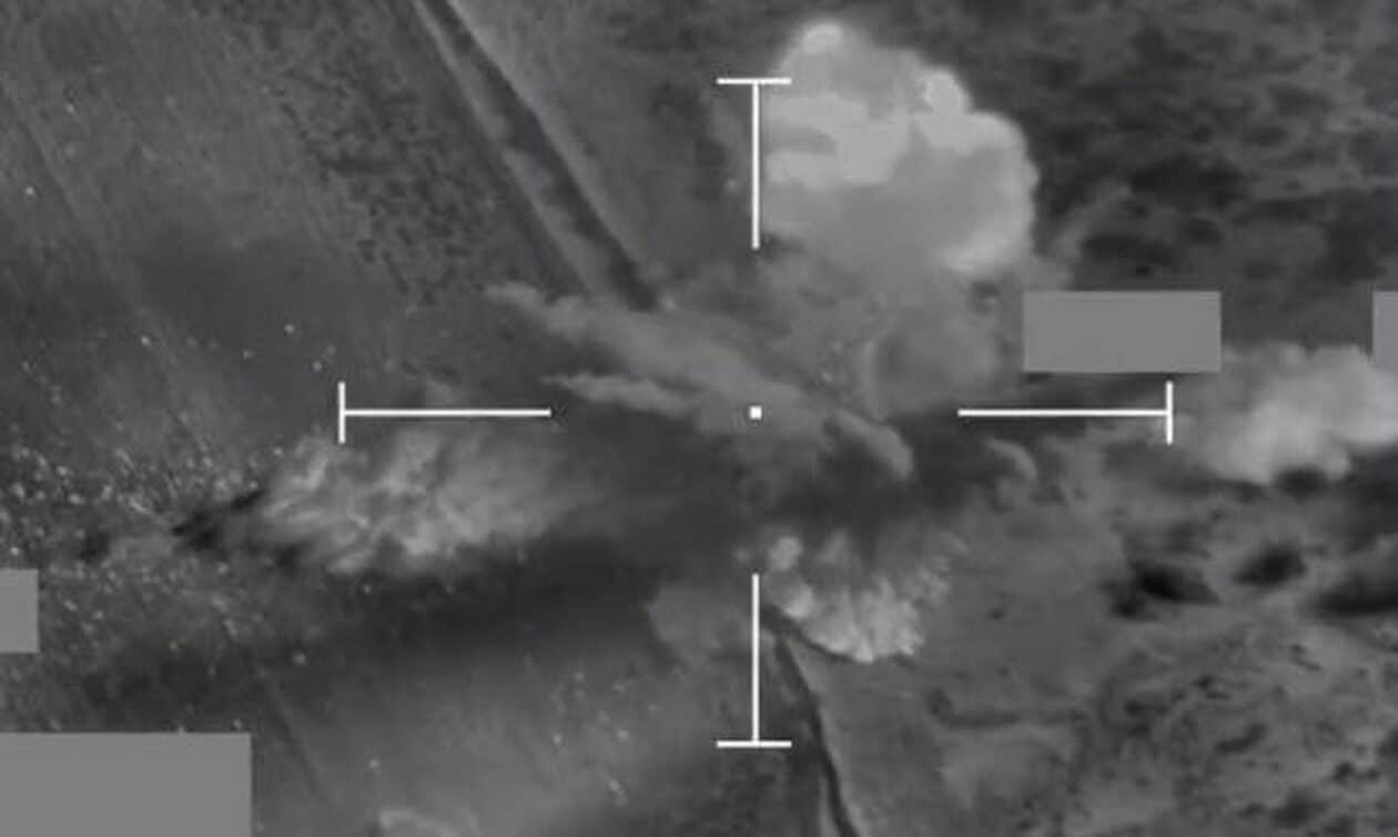 Στο βίντεο διακρίνεται ένα κτίριο στο στόχαστρο του μαχητικού αεροσκάφους, ενώ στη συνέχεια σημειώνεται μια μεγάλη έκρηξη.