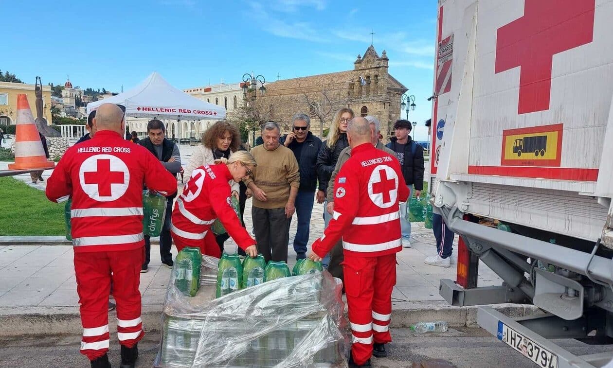 Ο Ελληνικός Ερυθρός Σταυρός διένειμε 10.000 μπουκάλια νερού στους πολίτες της Ζακύνθου.