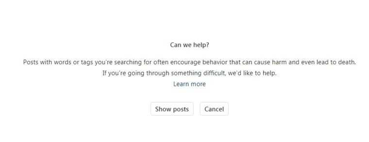 Το μήνυμα του Instagram μετά την αναζήτηση της λέξης “suicide” (αυτοκτονία)