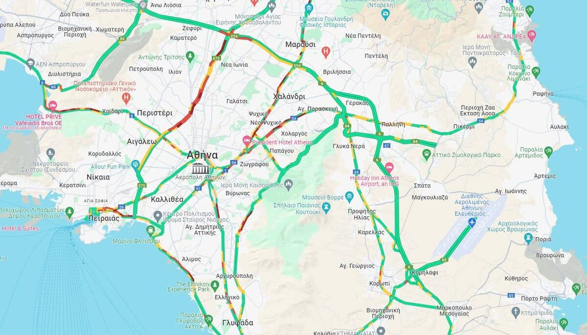 Στην Αττική Οδό μέχρι στιγμής είναι ομαλή η κυκλοφορία, όπως και στη Λεωφόρο Κηφισίας.