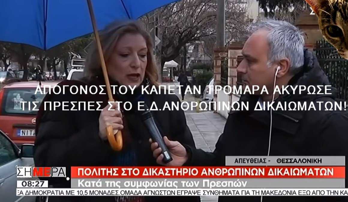 Καταδίκασε τις Πρέσπες το Ευρωπαϊκό Δικαστήριο Aνθρωπίνων Δικαιωμάτων (vid) 29 Ιανουαρίου 2019 14:46 FacebookTwitterTelegramViberWhatsAppLinkedinEmail Δικαίωση για τη Μακεδονία από το Ευρωπαϊκό Δικαστήριο. Η Κική Κλιαρά απόγονος του Μακεδονoμάχου Καπετάν Τρομάρα προσέφυγε στο Ευρωπαϊκό Δικαστήριο ανθρωπίνων Δικαιωμάτων κατά της συμφωνίας των Πρεσπών και δικαιώθηκε! FacebookTwitterTelegramViberWhatsAppLinkedinEmail Προηγούμενο άρθροΕλένη: Τα ουρλιαχτά στο καμαρίνι και το βίντεο που «καίει» συνεργάτη τηςΕπόμενο άρθροΘλίψη στη Μυτιλήνη: Πέθανε γνωστός δημοσιογράφος Μπορεί να σας αρέσουν Ελλάδα Σύγκρουση αυτοκινήτων στην Παιανία – Ένας τραυματίας με κρανιοεγκεφαλική κάκωση 18 Δεκεμβρίου 2025 18:55 Ελλάδα Κίνηση στους δρόμους: Στο «κόκκινο» Κηφισός, Κηφισίας, Μεσογείων, Αττική οδός και κέντρο Αθήνας 18 Δεκεμβρίου 2025 18:51 Ελλάδα Λαμία: Φωτιά σε σταθμευμένο αυτοκίνητο τα ξημερώματα – Το όχημα καταστράφηκε – Βίντεο 18 Δεκεμβρίου 2025 18:39 Αφήστε ένα μήνυμα Σχόλιο: εισάγετε το σχόλιό σας! Όνομα: παρακαλώ εισάγετε το όνομά σας εδώ Email: έχετε εισάγει εσφαλμένη διεύθυνση ηλεκτρονικού ταχυδρομείου! παρακαλώ εισάγετε εδώ την ηλεκτρονική σας διεύθυνση Ιστοσελίδα: αποθηκεύστε το όνομα, το ηλεκτρονικό ταχυδρομείο και τον ιστότοπό μου σε αυτό το πρόγραμμα περιήγησης για την επόμενη φορά που θα σχολιάσω.