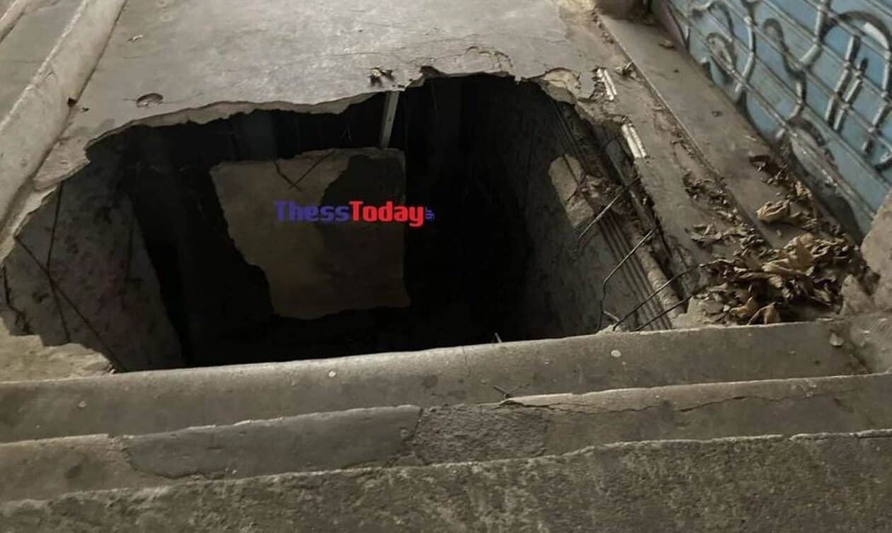 Συγκλονιστικές είναι οι εικόνες από τη στοά της οδού Τοσίτσα στη Θεσσαλονίκη, εκεί όπου παραλίγο να χάσουν τη ζωή τους δυο 19χρονοι, όταν το έδαφος άνοιξε κυριολεκτικά και βρέθηκαν στο κενό.