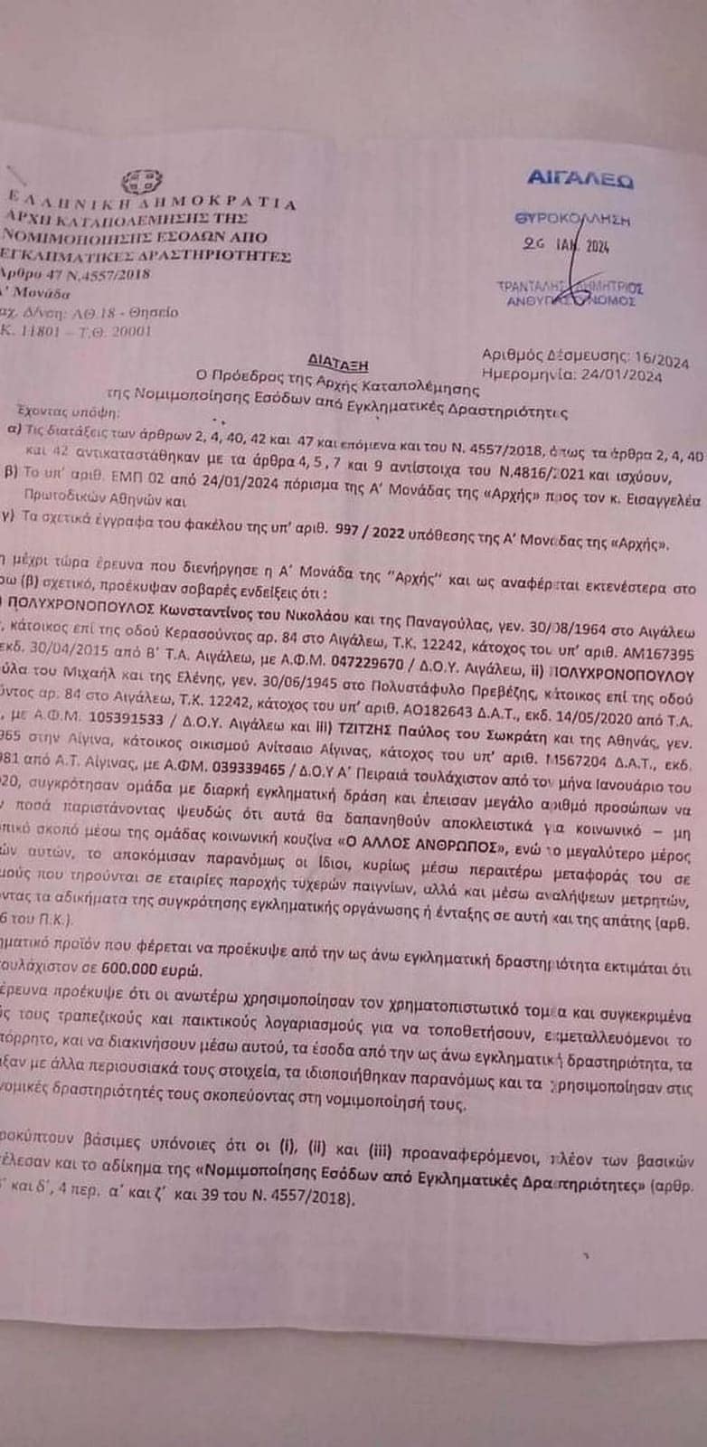 Στον Εισαγγελέα σήμερα ο «Άλλος Άνθρωπος»: Απαντήσεις για το ξέπλυμα μαύρου χρήματος – Δεσμεύτηκε η περιουσία του