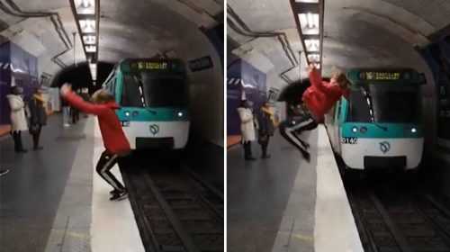 Οι επιβάτες του μετρό στο Παρίσι δεν είναι πια καθόλου ασυνήθιστο να βλέπουν έναν τύπο να προσεγγίζει την αποβάθρα και να εκτελεί τα κόλπα του μπροστά ακριβώς από τον διερχόμενο συρμό.