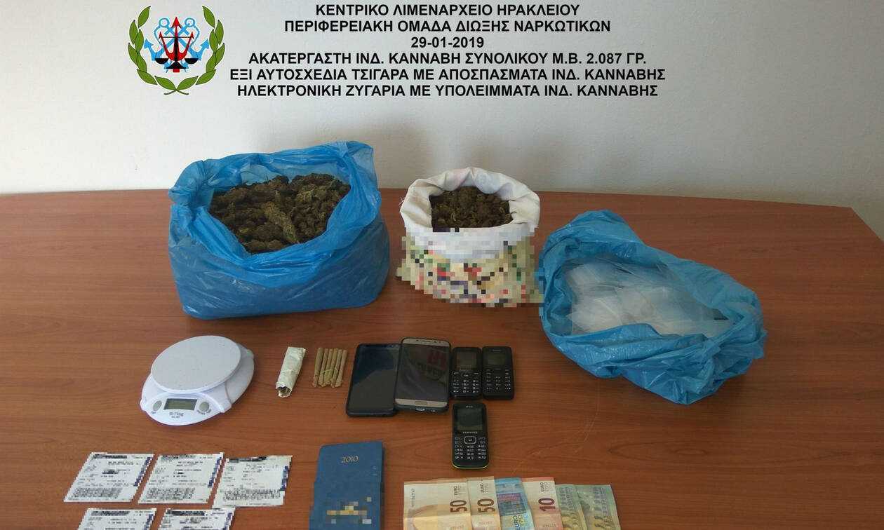 Στη σύλληψη δύο αλλοδαπών ηλικίας 29 και 21 ετών προέβησαν, το πρωί της Τρίτης (29/1), στελέχη της Περιφερειακής Ομάδας Δίωξης Ναρκωτικών του Κεντρικού Λιμεναρχείου Ηρακλείου, για παράβαση του Νόμου 4139/13 περί εξαρτησιογόνων ουσιών.