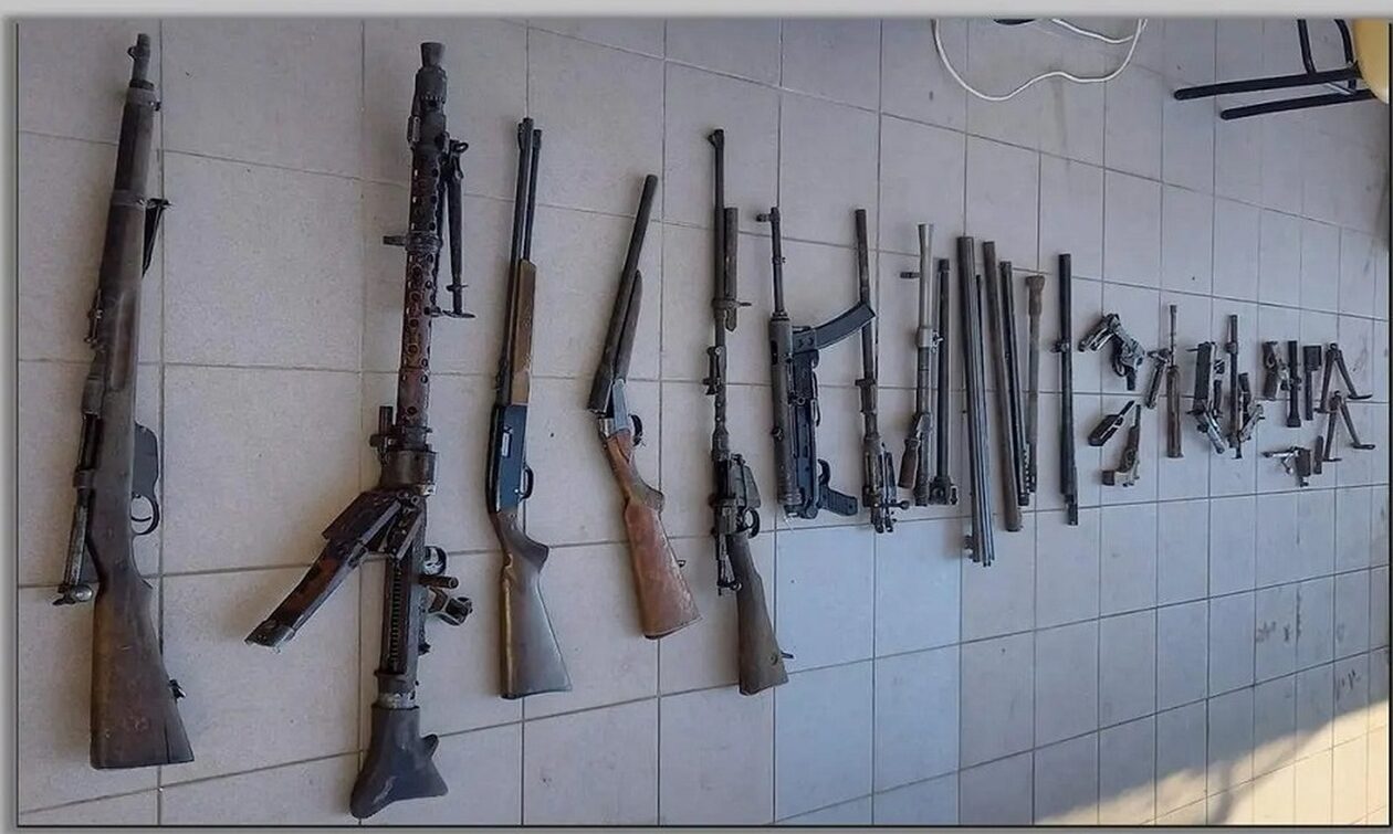 - 10 όπλα, εκ των οποίων 3 πολεμικά τυφέκια, 1 πολυβόλο, 1 υποπολυβόλο, 1 κυνηγετικό όπλο, 1 πιστόλι, και 3 αυτοσχέδια όπλα,