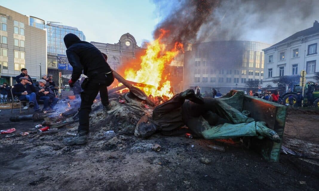 Οι διαδηλωτές, στην πλειονότητά τους Βέλγοι, Γάλλοι και Ιταλοί, συγκεντρώθηκαν κοντά στο Ευρωπαϊκό Κοινοβούλιο, όπου ξέσπασαν συγκρούσεις με την αστυνομία. Στην προσπάθειά τους να «σπάσουν» τα οδοφράγματα οι αγρότες πέταξαν αυγά και κροτίδες στους αστυνομικούς, οι οποίοι απάντησαν με δακρυγόνα και πυροσβεστικούς σωλήνες. Παράλληλα, πέταξαν κοπριά στον δρόμο, έβαλαν φωτιές ενώ ξήλωσαν άγαλμα του μνημείου του Τζον Κόκεριλ, στο κέντρο της πλατείας.