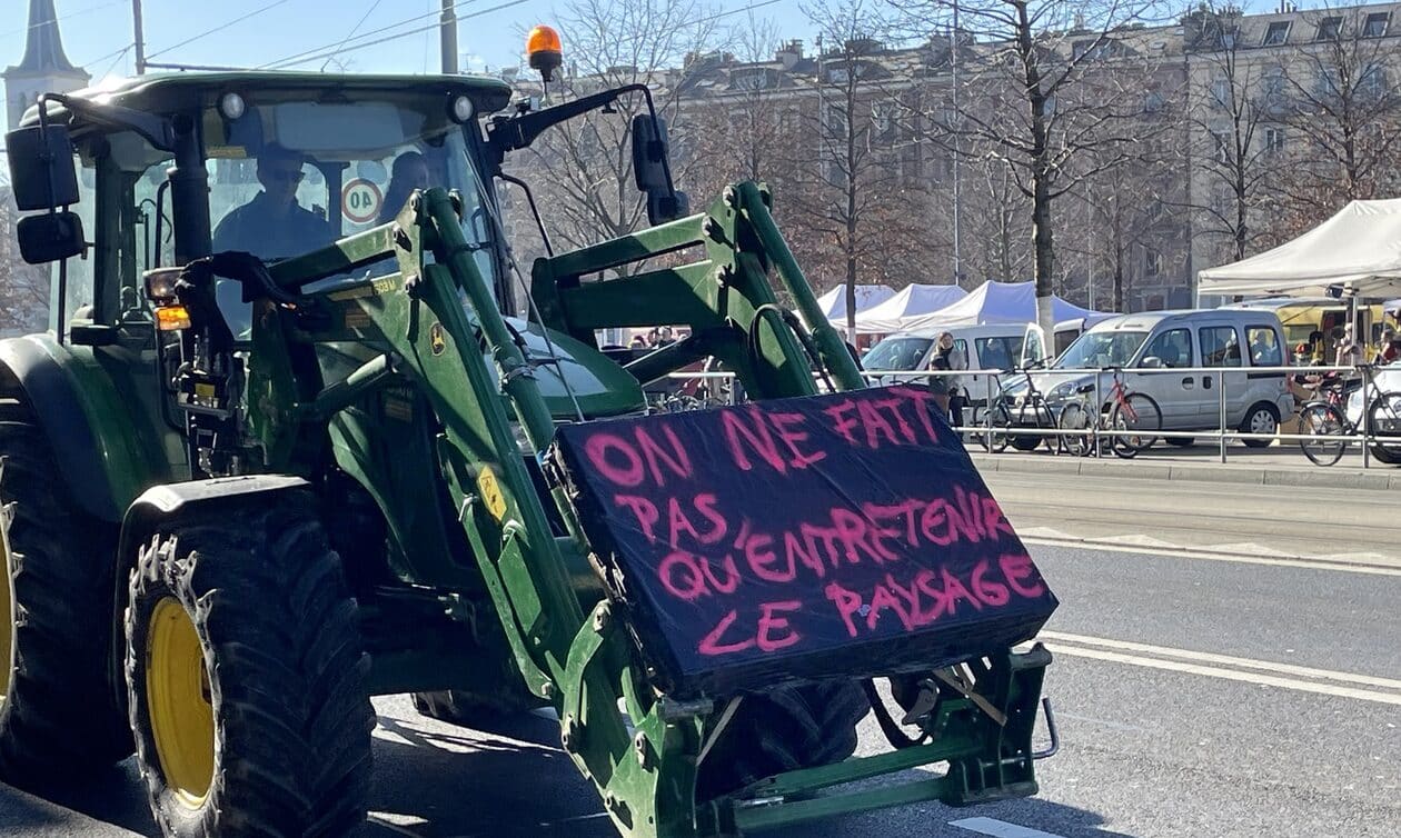 Περίπου 30 τρακτέρ κατέβηκαν σήμερα στους δρόμους της Γενεύης προκειμένου να εκφράσουν την «εξέγερση» και τις διεκδικήσεις των Ελβετών αγροτών, στην πρώτη τέτοια συγκέντρωση στην Ελβετία αφότου ξεκίνησαν οι κινητοποιήσεις των αγροτών στην Ευρώπη.