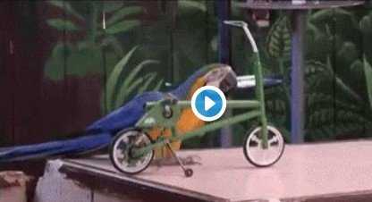 Δείτε τον απίστευτο παπαγάλο πως κάνει μονοπεταλιές πάνω σε ένα ειδικά διαμορφωμένο για αυτόν ποδήλατο.